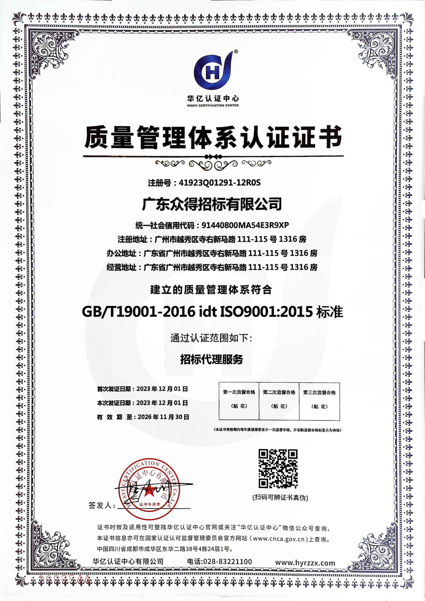 廣東眾得招標有限公司,經(jīng)國家有關部門批準成立,注冊資本1000萬元,公司主要提供全過程工程咨詢服務(投資咨詢、工程設計、勘察、工程監(jiān)理、招標代理、工程造價、項目管理等)以及政府采購業(yè)務。