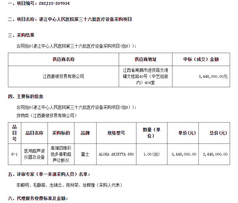 湛江中心人民醫(yī)院第三十六批醫(yī)療設備采購項目【項目編號:ZDZJ22-Z07024】(包6)結果公告